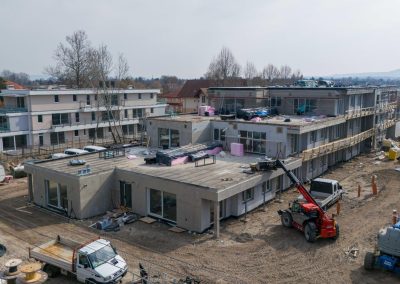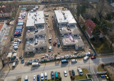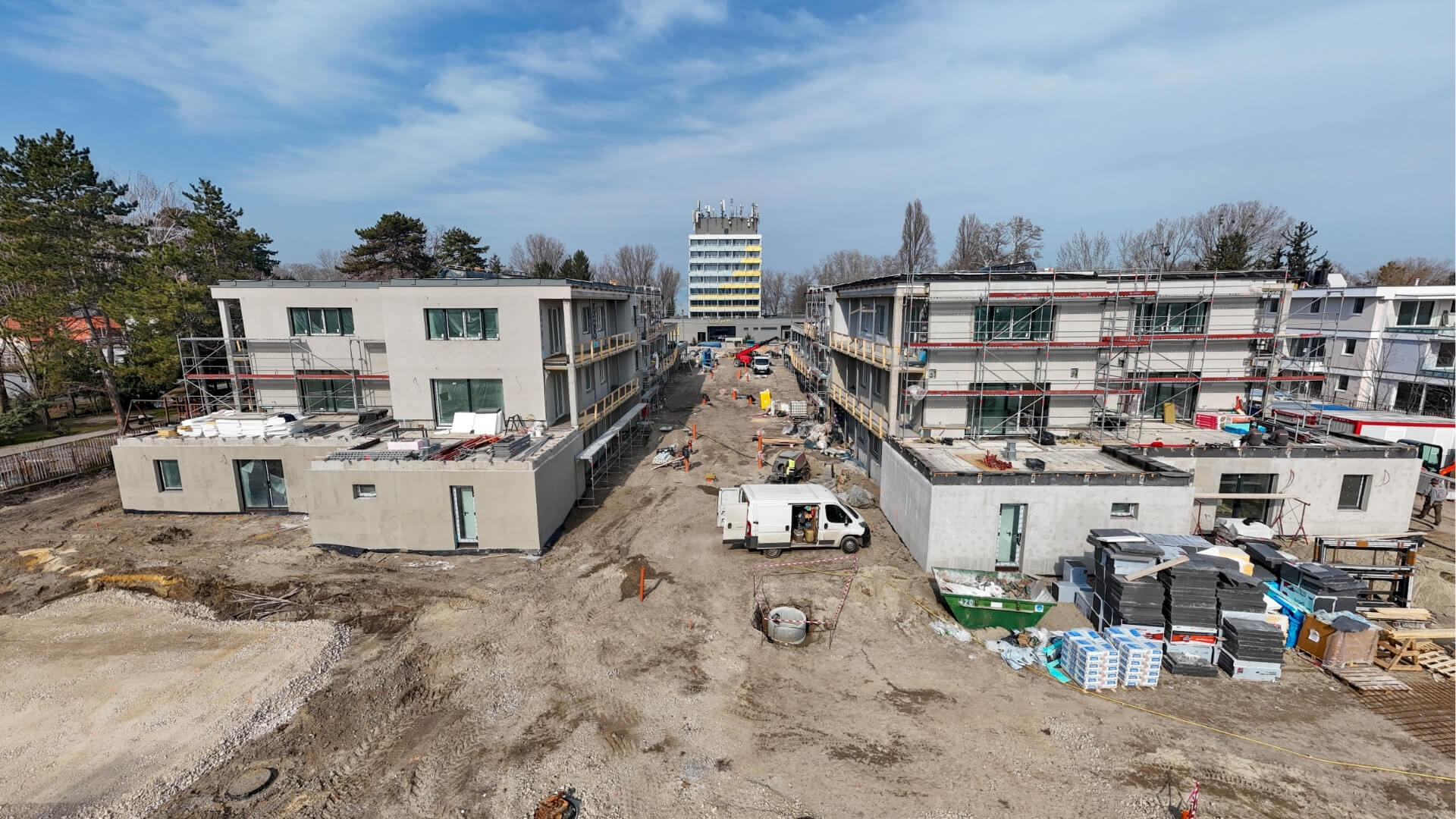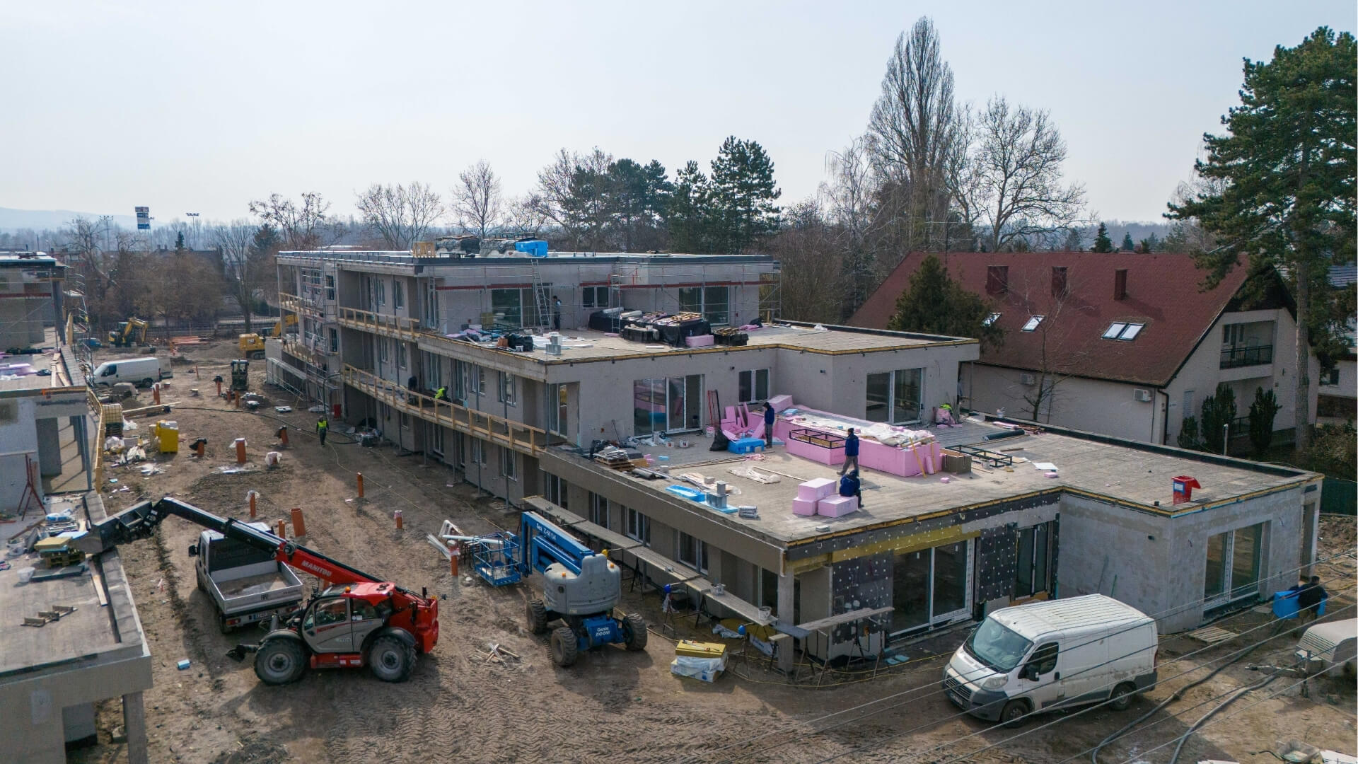 A My Lelle lakópark építkezése egyre látványosabb szakaszába érkezett. Az elmúlt hetekben több fontos munkafolyamat is új szintre lépett: az épületek külső kialakítása már szinte teljes, miközben a lakások belső tereiben is a befejező munkák zajlanak.