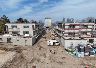 A lakópark környezetében is fontos mérföldkőhöz érkezett a kivitelezés. A teljes közműhálózat kiépítése elkészült, ami alapfeltétele a további munkálatoknak. Emellett az útépítési munkák előkészítése is megtörtént, így hamarosan a külső infrastruktúra kialakítása is új szakaszba lép.