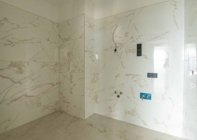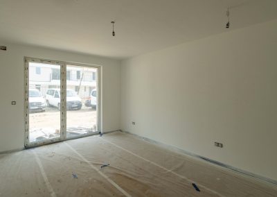 A lakásokban jelenleg festési és burkolási munkák zajlanak, több otthonban már a végleges felületek készülnek. A közösségi terek kialakítása is szépen halad, a festési munkák itt is megkezdődtek, így ezek a területek is egyre inkább felveszik végleges formájukat.